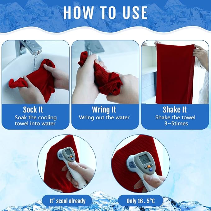 - Quick Cooling and Reusability: these bulk cooling towels are machine washable, the breathable mesh of cooling towels bulk allows you to easily activate the refrigerated towel by soaking, wringing and breaking; You can reuse these cooling towels for hot weather many times; The good cooling design can help to absorb sweat from your skin and keep you cool