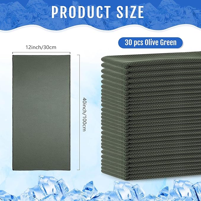 - Package Includes: there are 30 pieces of cooling towels in the package, enough to meet your daily use and replacement requirements; The cooling rag are ideal choices for gyms, companies, schools, outdoor competitions and communities