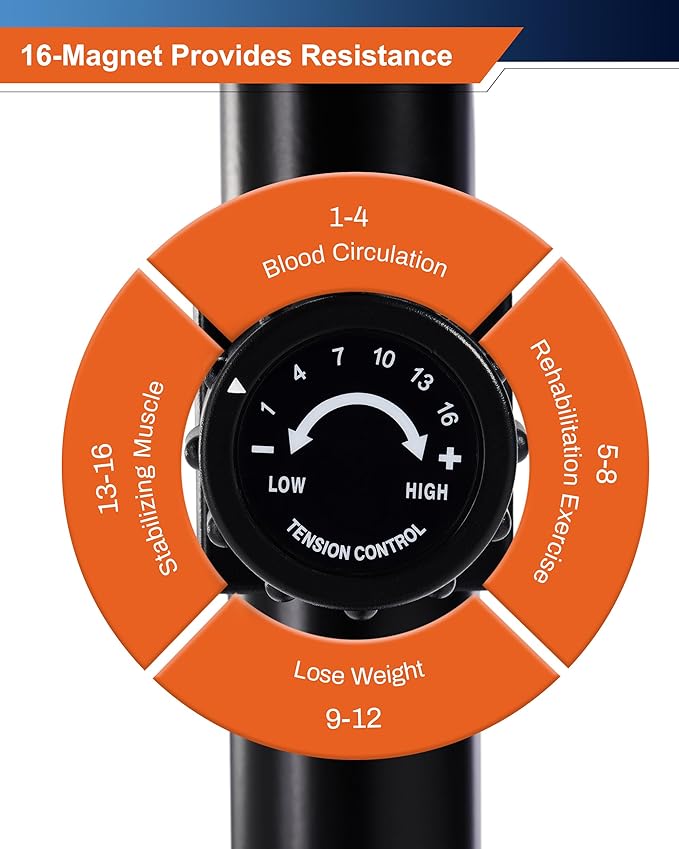 - 16-Level Quiet & Smooth Magnetic Resistance: With patented reluctance technology, our recumbent bikes for adults keep your workouts ultra-quiet with noise levels as low as 5DB, and makes it ideal for both beginners and professionals. Choose your perfect workout level and achieve optimal efficiency.
