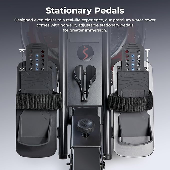 - 【AUTHENTIC ROWING EXPERIENCE】Immerse yourself in a smooth and realistic water rowing session with stationary pedals and volute spring system. Increase your rowing intensity to experience greater resistance, simulating the authentic feel of open water.
