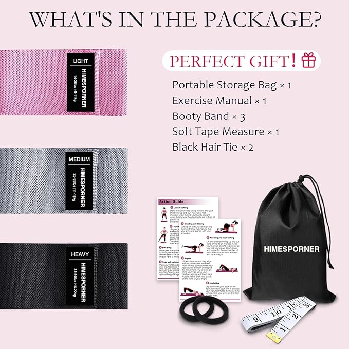 - 【Easy to Carry & Exercise Anywhere】: HIMESPORNER Resistance Band comes with a convenient carrying bag for easy storage and portability. Whether you're at home, at the gym, or traveling, you can work out and get in shape anytime. 2 hair ties in the package help solve the problem of loose hair and make your workout more focused.