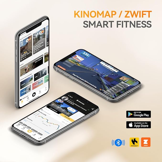 - 【Supported with Smart APP】Equipped with built-in Bluetooth, supports Smart APPs like KINOMAP, suitable for a holistic fitness experience, so you can experience different riding scenarios, as well as the fun of cycling races.