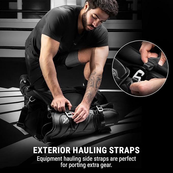 Hayabusa Airstream Athletic Duffle Gym Bag for Women and Men - Black, 50l duffle bag - 7 zippered Pockets, Good for travel, Boxing, MMA, BJJ, kickboxing, Muay Thai, wrestling, Glove/Shoe Compartment