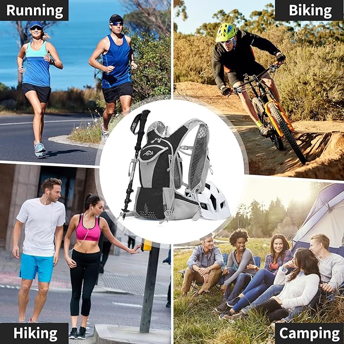 - 🚴【Security and Multiple Storage Pocket】Water backpack for hiking Reflective trim for night safety, has multiple pockets can store various necessities outdoor. The bottom front pocket allows you to quickly find what you need during hiking. Smaller quick access items without removing the pack, such as keys, wallet, gadget, sunscreen, phone, towel, or any other items. To travel light, efficient access, let you run faster and farther.