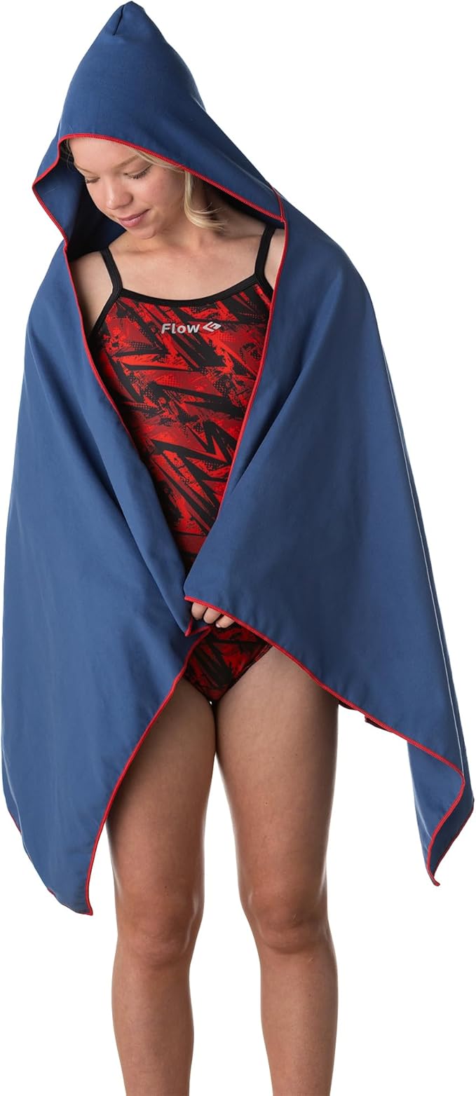 Flow Hydro Sport Towel - Microfiber Quick Dry Swimming Towels for Swim, Pool, Triathlon, and Other Water Sports in Medium, Large, Extra Large, and Hooded Sizes (Navy, Large w/Hood)