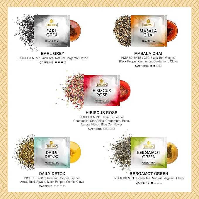 - INDIVIDUALLY WRAPPED - Each Brewix sachet comes individually wrapped in pyramid tea bag sachets ready to be steeped into a perfect cup of tea. Wrapping each individual sachet allows us to ensure each bag is fresh, full of flavor, and ready to be enjoyed. Take some on the road with you !