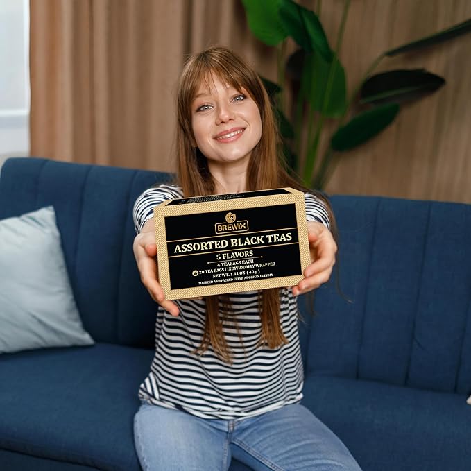 - ASSORTED BLACK TEA GIFT SET - This pack includes 5 different flavors and 4 tea bags each of Earl Grey, English Breakfast, Everyday Assam, Himalayan Breakfast and Golden Summer (Darjeeling). Each of our 20 tea bags variety pack comes in a branded Brewix box making it a perfect caffeinated tea gift set for any tea lover.