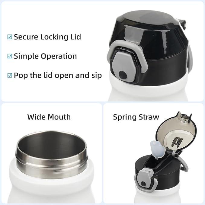 - Equipped with a lockable flip lid and a spring straw, the bottle is leak-proof,left it in your bag without worrying any spills. Simple operation design ensures you Just pop the lid open and sip.Soft silicone spout makes a nice drinking experience.