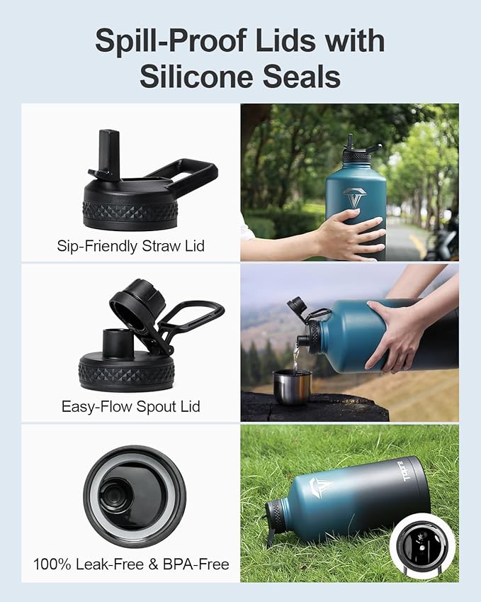 - No Leaks, No Worries: This stainless steel water bottle ncludes two leak-proof lids—a straw lid and a spout lid. Both are equipped with silicone rings to prevent any spills or leaks, and are completely BPA-free for your peace of mind.