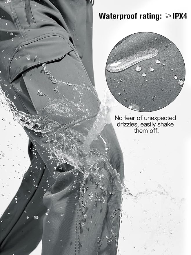 - Versatile & Utility Pants: Your Must Have Mens Outdoor Waterproof Soft shell Fleece-Lined Pants in this winter. Suitable for daily wear, snowboarding, ski touring, hiking, hunting, travelling, skiing, camping, fishing, mountaineering, biking, cycling, running. Please refer to the size chart when you choose the size, all the data are accurately measured