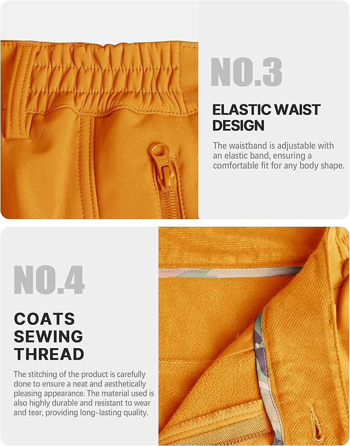 • Warm & Soft Fabric: The softshell pants inner layer made of warm polar fleece which offers superior next-to-skin comfort, stave of winter winds and chilly temperatures so you stay warm all season long. The classic soft shell surface layer using windproof fabric block the cold air to further improve thermal insulation performance. Both outer and inner are useful for preventing loss of heat from the body, effectively to warm your body even under extreme winter or snowy conditions