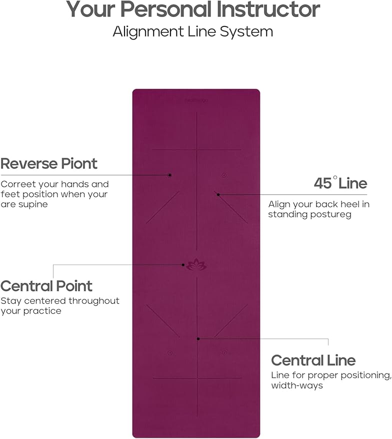 - Body Alignment System: The yoga mat alignment lines help you to focus and adjust your hands and feet to the accurate position, and keep body in proper alignment. The yoga mats for home workout allow you to work out alone during yoga time, away from injuries.