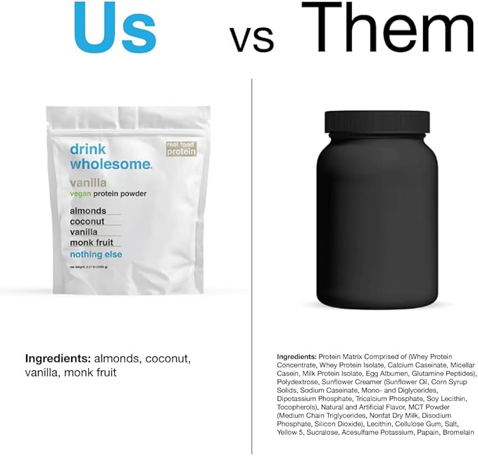 drink wholesome Vegan Vanilla Almond Protein Powder | for Sensitive Stomachs | Additive & Dairy Free | No Artificial Sweeteners | No Bloating, Farts or Gas | No Constipation or Diarrhea