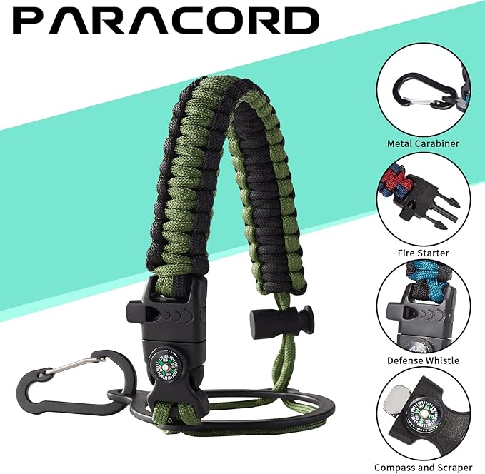 - UNIQUE PARACORD—Perfect Accessories: bright color paracord matches the flask water bottle to give you a youthful vibe while adding a personal style. It comes with a compass, safety loop, metal carabiner, flint, igniter, and whistle to become your survival tool for your wild adventures