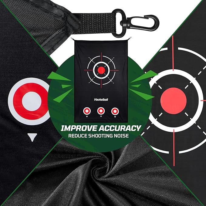 - Large-Sized Target Cloth: Our noise-reducing target cloth reduces noise by 50% compared to other target cloths on the market, while withstanding the impact of real golf balls for long-lasting performance. Featuring a lightweight, foldable design with convenient hanging hooks and precision target printing, it enables you to elevate your accuracy
