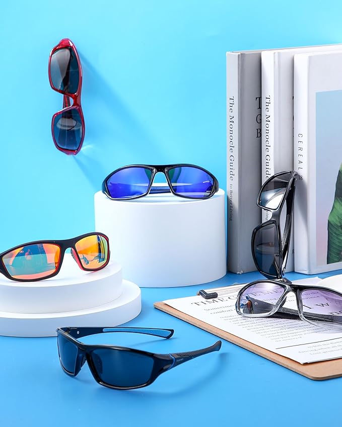 Frienda 6 Pack Polarized Sport Sunglasses for Men Multipack Fit over Glasses Pack Lot Set Men's Sport Fishing Eyeglasses
