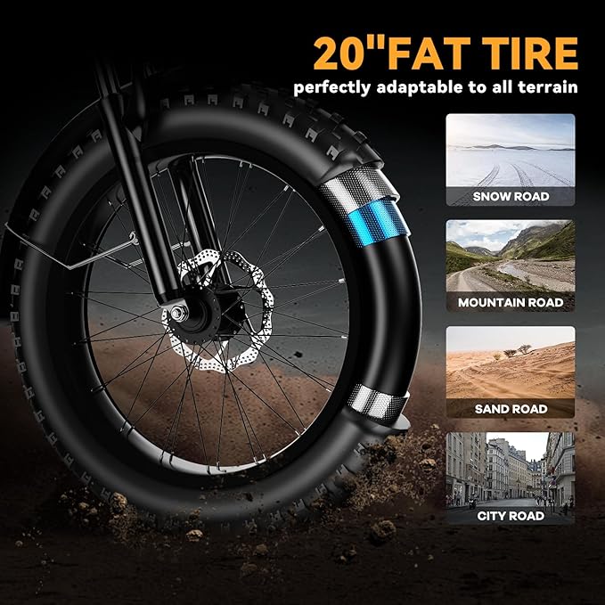 1000W Folding Electric Bike, 48V 20AH Large Removable Battery E Bike, 30+MPH, 80 Miles Max Range, 20" Fat Tire Electric Bike for Adults, Adult Electric Bicycles for Commute Beach Snow