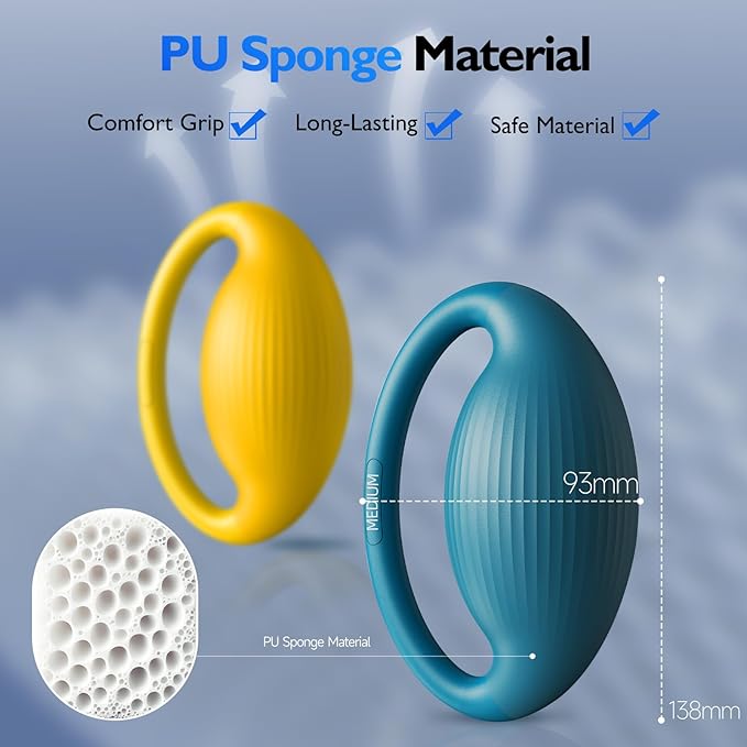 - ๐ฃ๐ฟ๐ฒ๐บ๐ถ๐๐บ ๐ฃ๐จ ๐ฆ๐ฝ๐ผ๐ป๐ด๐ฒ ๐ ๐ฎ๐๐ฒ๐ฟ๐ถ๐ฎ๐น & ๐๐ฟ๐ด๐ผ๐ป๐ผ๐บ๐ถ๐ฐ ๐๐ผ๐บ๐ณ๐ผ๐ฟ๐: Crafted from high-quality PU sponge, our squeeze balls for hand therapy offer a soft and comfortable grip with high resilience, maintaining their shape even after prolonged use. The ergonomic design fits the natural contours of your hand, minimizing discomfort during long sessions.