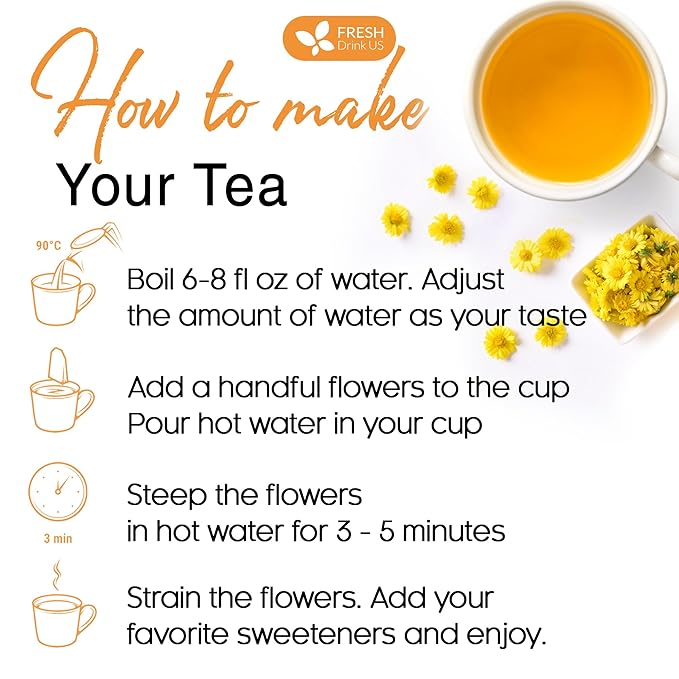 FreshDrinkUS, Premium 8oz Chrysanthemum Flowers, 100% Natural & Pure Chrysanthemum Flower Dried, Chrysanthemum Herbal Tea, No Additives, No Caffeine, Vegan