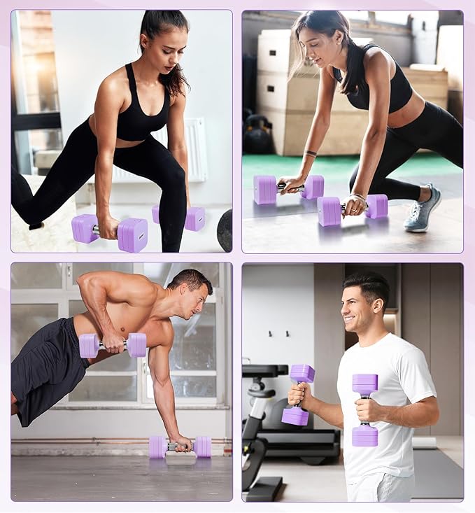 - 4 In 1 Adjustable Hand weights dumbbells set for men women. Dumbbell set for women consists of 8 weight 0.95lbs dumbbell plate, adjustable range is 4lb, 6lb, 8lb, 10lb each weight (A Pair 8lbs 12lbs 16lbs 20lbs).