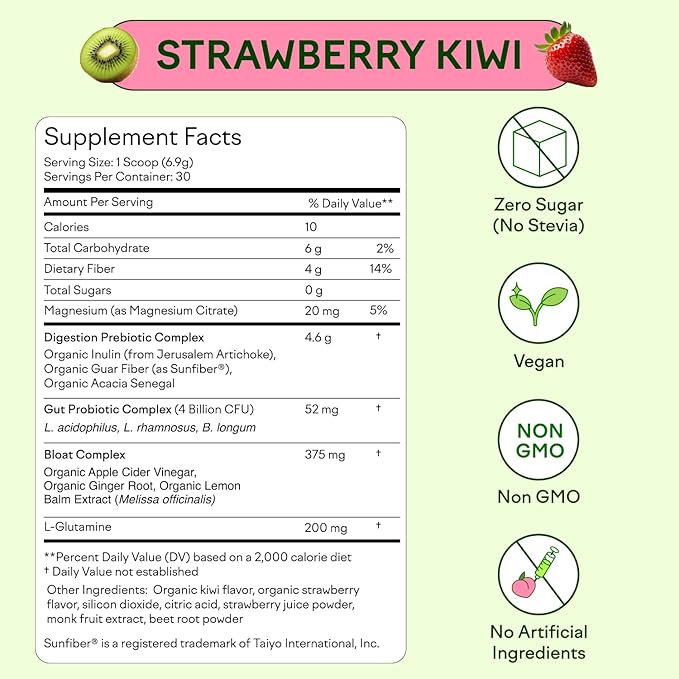 Feel Goods Gut Guardian, Organic Fiber, Probiotic & Prebiotic Powder, Sugar Free, Herbs for Bloat, Gut Health Support, Digestive Health for Men & Women, Non GMO, Vegan, Strawberry Kiwi, 30 Servings