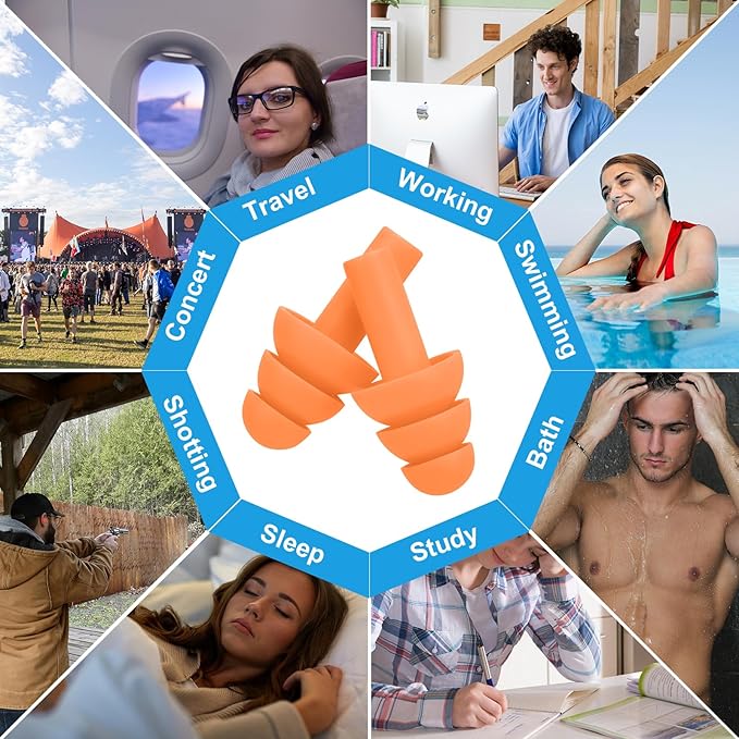 - Triple Protection - 3 layer design improves sealing ability and comfort, effectively reduces noise and has high water resistance. These earplugs are very suitable for sleeping, swimming, shooting, studying, noisy work environments, concerts, motorcycles, traveling by plane and loud events.