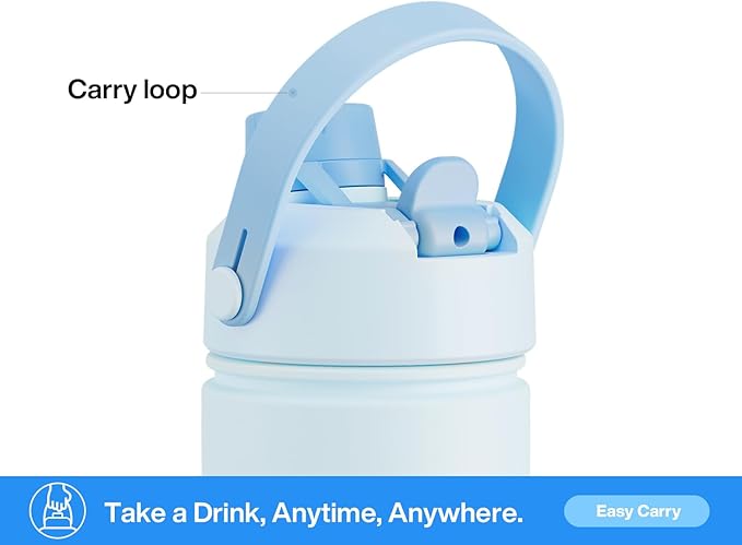 26 oz Insulated Water Bottle with 2-in-1 Straw and Spout Lid, Keep Cold 24H, Leak-Proof, Fits in Car Cup Holder, Stainless Steel Water Bottle for Sports, Travel, and School (Sea Breeze)