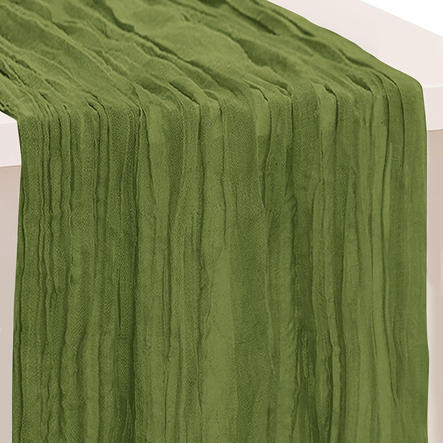 1 Pack Olive Green Cheesecloth Table Runner 35x120 Inch 10Ft Rustic Gauze Cheese Cloth Table Runner Sheer Cheesecloth Table Runners for Wedding Party Bridal Shower Decoration
