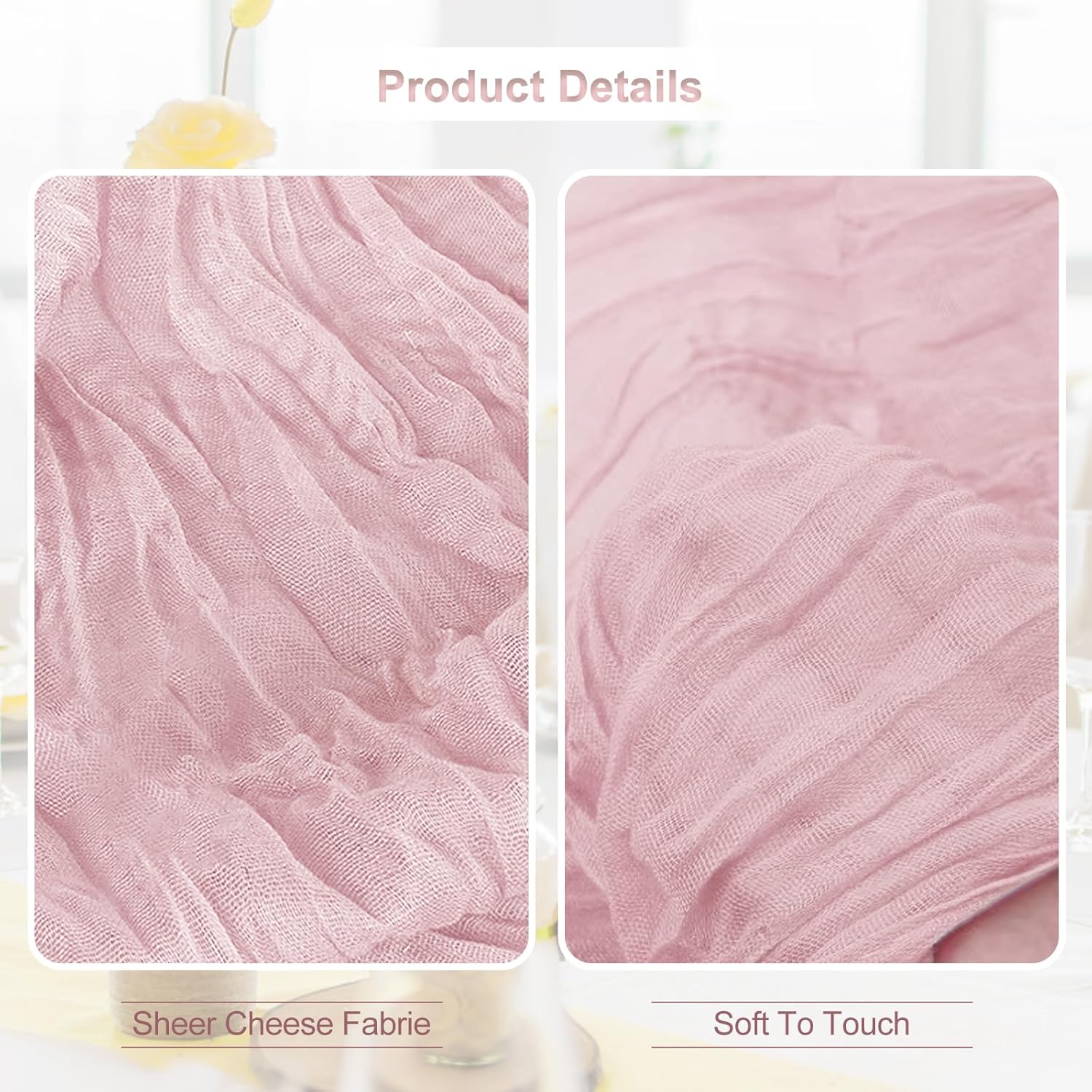 1 Pack Dusty Pink Cheesecloth Table Runner 35x120 Inch 10Ft Rustic Gauze Cheese Cloth Table Runner Sheer Cheesecloth Table Runners for Wedding Party Bridal Shower Decoration