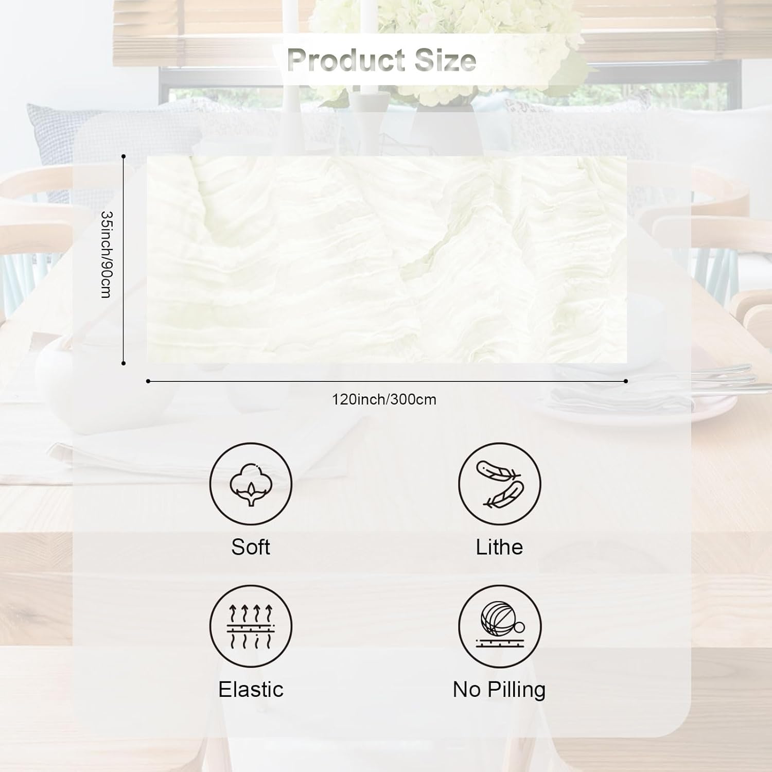 - Washing Tips: Please allow some little color differences and some size differences for gauze table runner cheesecloth, due to different screen, light environment or manual measurement. For keep the tulle table runner long-lasting reuse, hand washing the runner in cold water with a mild detergent. Please avoid using bleach or soaking the runner for an extended period.
