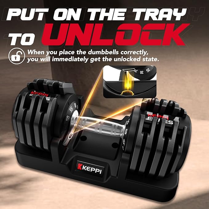 Keppi Adjustable Dumbbells Set-25lb/40lb/55lb/60lb, Anti-Slip Metal Fast Adjust Weight Handle, Exercise & Fitness for Full Body Workout - Adjustable Dumbbell Series