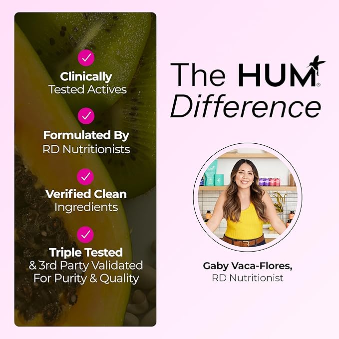 - Clean and Clinically Studied. HUM products are Clean Label Project Certified, non-GMO, and rigorously tested to meet the highest standards of safety and quality, free from artificial flavors, sweeteners and colors.
