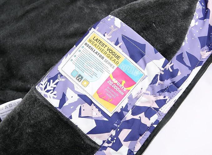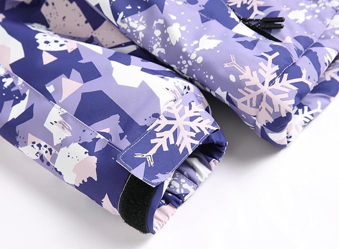 • Girls snowboarding jacket with elastic detachable hooded and hem help seal in warmth. Adjustable hook-and-loop closure cuffs provide custom fit with your children gloves. High-quality SBS zipper is matched with windproof placket, perfectly locks the warmth.