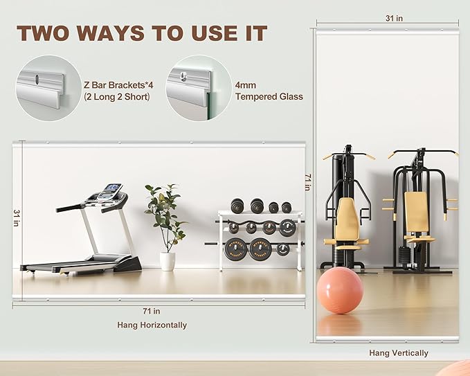 - 🍧[After-sales Service] We have more than 20 years of experience in glass production, and we guarantee that the fitness mirrors you receive are thoroughly quality guaranteed. Mirrors are fragile and collisions are inevitable during transportation. If you find any problems or any parts are missing when you receive the mirror, please contact us in time. We will solve the problem for you as soon as possible.