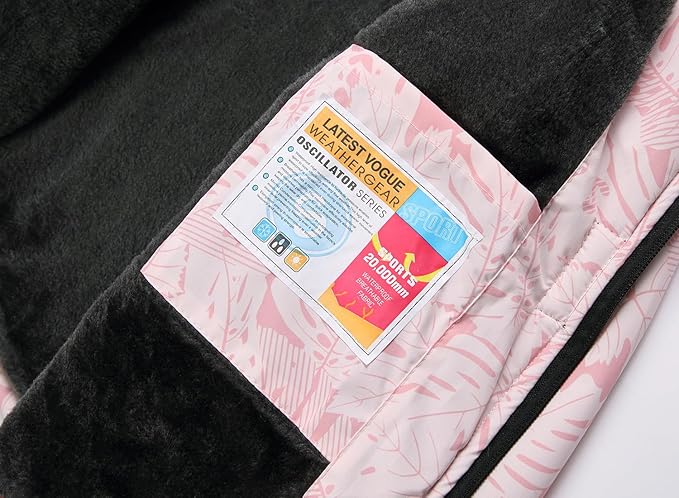 - Girls snowboarding jacket with elastic detachable hooded and hem help seal in warmth. Adjustable hook-and-loop closure cuffs provide custom fit with your children gloves. High-quality SBS zipper is matched with windproof placket, perfectly locks the warmth.