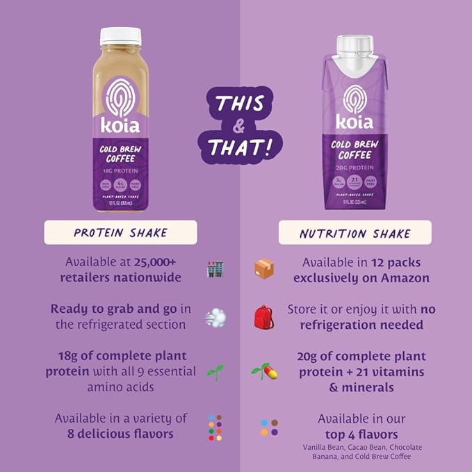 - Find Your Flavor: Koia shakes are creamy, smooth, and catered to your cravings. Whether you're vegan, gluten-free, keto, or anything in between, you have plenty of far-from-boring flavors to satisfy your sweet tooth. Explore our products to find the perfect nutrition shake for you!