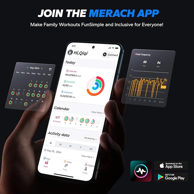 - Smart Data Monitoring: The large screen monitor clearly displays workout data, providing real-time tracking of your progress. Connect via Bluetooth to the MERACH APP to easily record and analyze your performance.