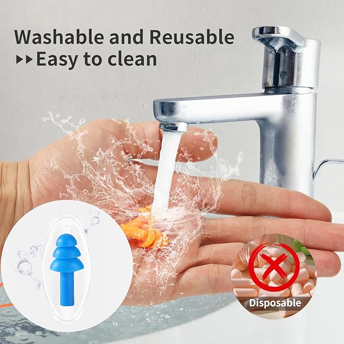 Ear Plugs for Swimming, Soft Ear Plugs for Sleeping Noise Cancelling, Reusable Ear Plugs for Noise Reduction, Ear Protection, Silicone Earplugs for Swimming, Sleeping, Snoring, Work, Concerts, 8 Pairs