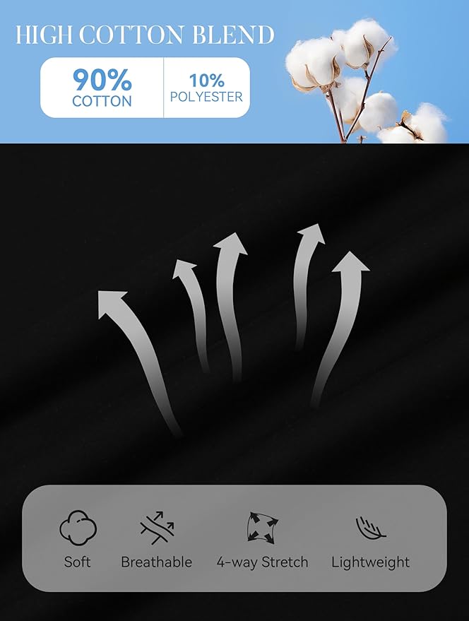 • Stretch Fit for All Body Types: The 10% spandex ensures a flexible fit that moves with your body, offering comfort and freedom, no matter your shape or size.