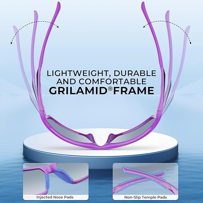- KEY FEATURES – Impact-resistant polarized 1.0mm TAC lenses reduce glare, Block 100% of harmful UVA and UVB rays, Oleophobic and saltwater resistant lens coatings protect mirror finish, Full wrap frame design, Lightweight, durable, and comfortable Grilamid frames, Non-slip temple pads.