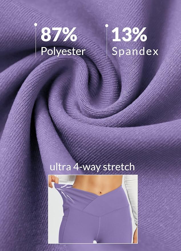 baleaf Women's V Crossover Flare Leggings with Pockets Yoga Pants High Waist Casual Workout Gym Bell Bottom Leggings