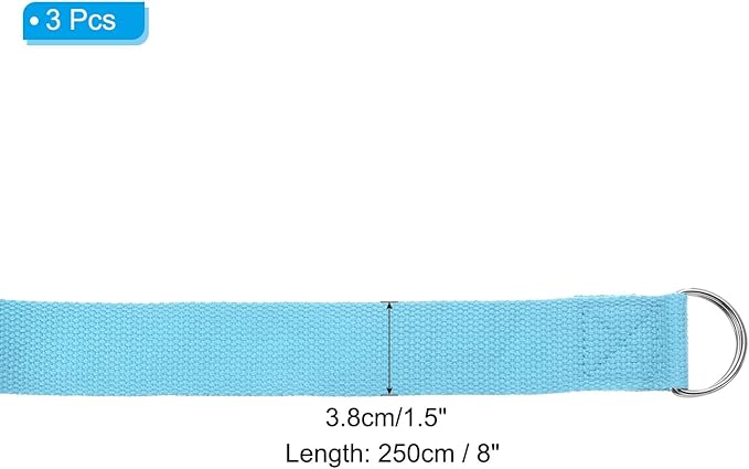 - Color: Sky Blue; Material: Cotton; Length: 250cm / 8 Feet; Width: 3.8cm / 1.5 Inch; Packing List: 3Pcs x Yoga Bands