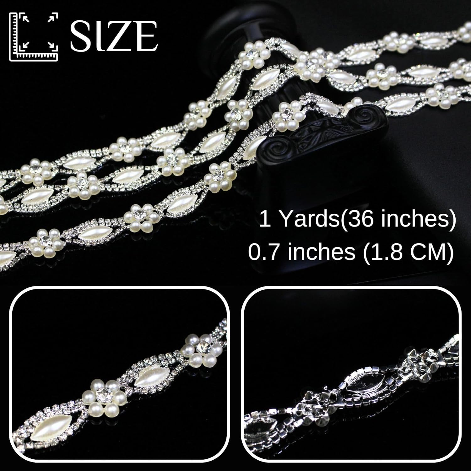 - Size: You will receive one roll of rhinestone chain, approximately 1 yard long and 0.7 inches (1.8 cm) wide, which is sufficient to meet your various decoration needs. You can also share it with friends or family. It's perfect for sewing trim and embellishments, and pearl garlands are also a great choice
