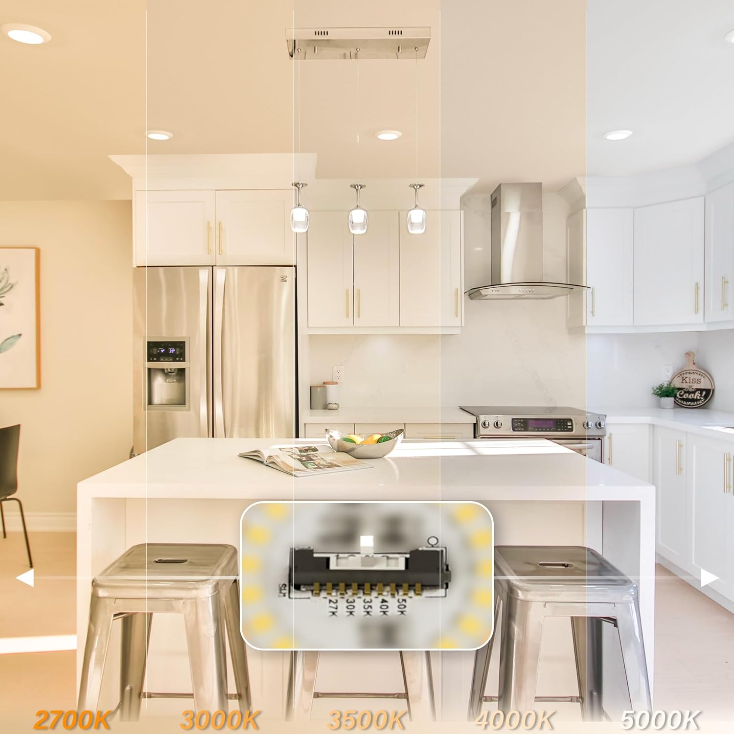 - SMOOTH DIMMING & 5CCT SELECTABLE: Compatible with most of the TRIAC/ELV dimmers, smoothly dimming capabilities (10%-100%) that fit your any need. (PLEASE refer to the dimmer list for selecting a right one for best dimming performance). Don't forget to select the right color temperature at the back of the unit from 2700K-3000K-3500K-4000K-5000K before installation