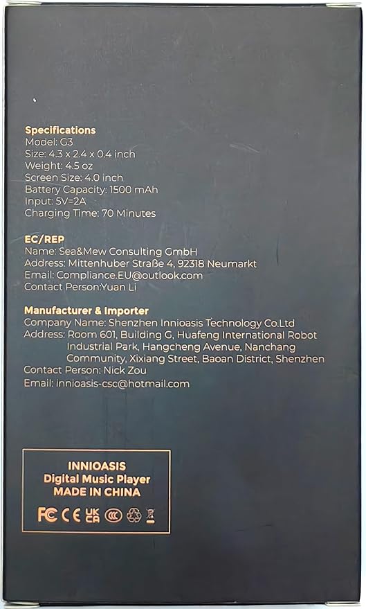 - Included Components : 128GB SD card x1, Mp3 player x 1, USB-C cable x 1, User manual x 1, Wired headphones x 1