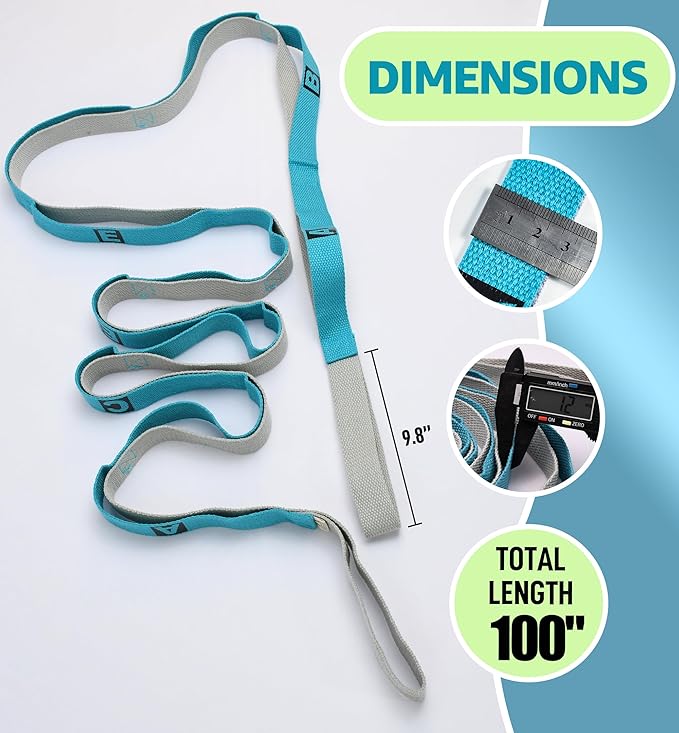 - Enhanced Flexibility & Range of Motion: Unlock your full potential with our yoga stretching strap, designed to improve flexibility and increase your range of motion. Perfect for yoga enthusiasts, dancers, and athletes, this strap helps you achieve deeper stretches and more graceful movements, making it an essential addition to your fitness routine. With a total length of 100 inches and a width of 1 inch, it provides ample room for various stretching techniques.