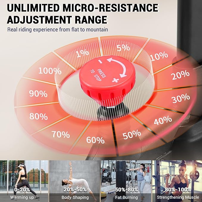 - [Customized Your Workout Plan] The monitor on our indoor cycling bike can capture your time, spd, dst, cal, odometer, and keep track of your exercise progress in real time. A dial tension knob to navigate the unlimited resistance levels makes you experience riding from the flat to the mountains. With a tablet holder you can watch spin class on your Tablet while riding to simulate traveling through France, gravel rides through the Utah backcountry, and even mountain bike rides in New Zealand.