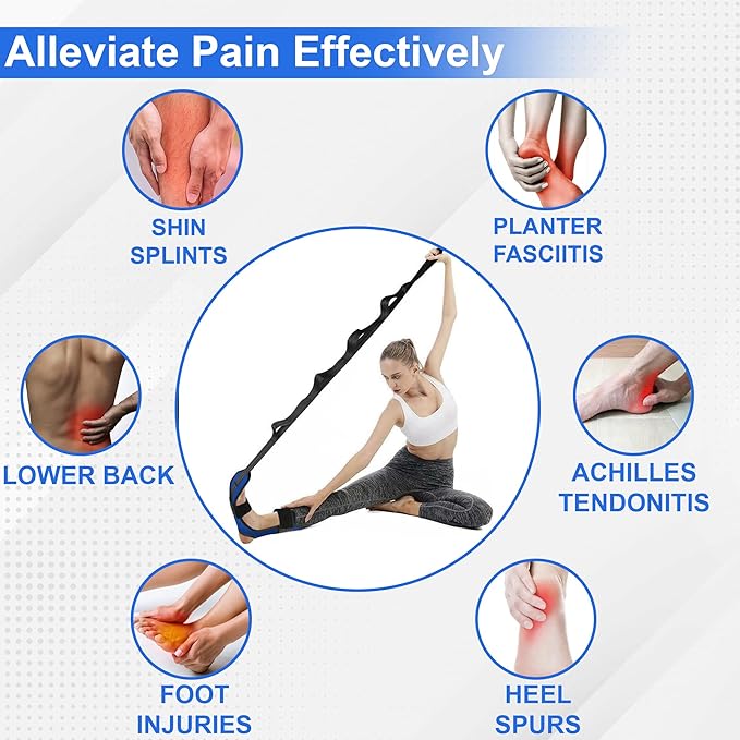- Customizable Stretching Levels: Equipped with hand loops that allow for varied stretching intensities; crafted with premium material for a secure grip; suitable for users of all levels, from beginners to advanced, to enhance flexibility and reduce leg discomfort
