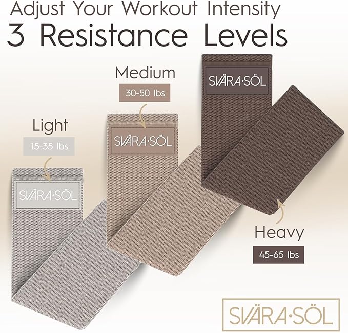 - PREMIUM QUALITY FABRIC RESISTANCE BANDS – Svära Söl fabric resistance bands are designed to withstand intense workouts without rolling or breaking. Crafted from durable, these bands provide superior grip and comfort during exercises like squats, lunges, and Pilates, giving you a workout experience that’s smoother and more effective than traditional rubber bands.