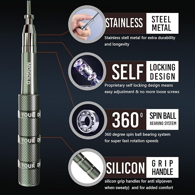 - 【Extremely Portable Feature】MOGOLD new design transformer chinese jump rope is a Retractable jumping rope Which can be Retracted freely to Jump and Put Away in carry case.It made by the stainless steel metal and have 1 pack 10ft replaceable cables,10cm*10cm free carry bag make it easy to carry to anywhere and anytime, including home gym and outdoor workouts,It's small enough to put in your cloths' pocket!!!